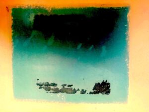 Sans titre, huile sur papier, 2024, collection particulière, Allemagne. Publiée en dialogue avec des poèmes d’Eva-Maria Berg. Version bilingue allemand et français (traduction par Eva-Maria Berg et Max Alhau). Revue Francopolis, hiver 2024.
