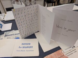 Exposition de deux livres d’artiste : Briser les nuages (avec Corinne Mariotte) et Vers le jour (avec Irène Boisaubert), Enseigne des Oudin (Fonds de dotation), 4 rue Martel 75010 Paris, 13 et 14 février 2026.